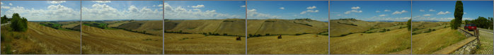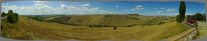 T3. Panorama - Droga SP438 z Asciano do Sieny