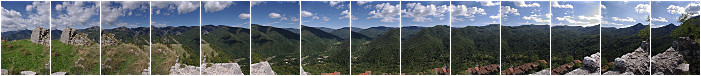 Widok w kierunku południowo-wschodnim z ruin twierdzy La Rocca z XI wieku, leżących nad wioską Lucchio (780m n.p.m.).
