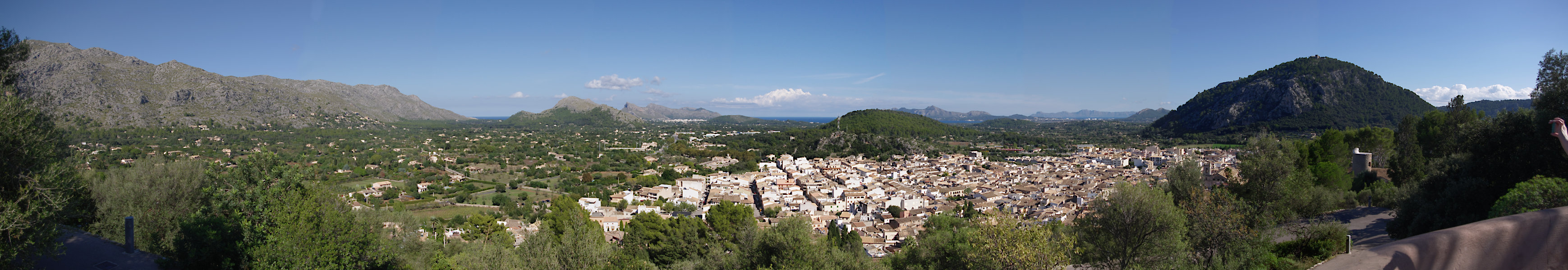 BA3. Panorama - Pollença (Hiszpania, Majorka) Widok ze wzgórza El Calvaria. Z prawej strony wzgórze Puig de Maria. Poz. N 39.880643°, E 3.012494° |