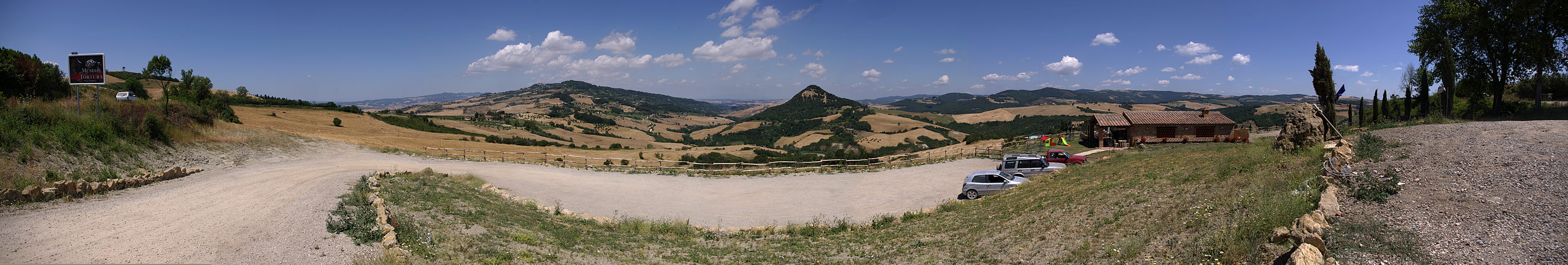 T21. Panorama - Droga SS68 Volterra-Colle di Val D'elsa Włochy, Toskania. Na środku Monte Voltraio (458m). Pozycja: N 43.387273°, E 10.913286° |