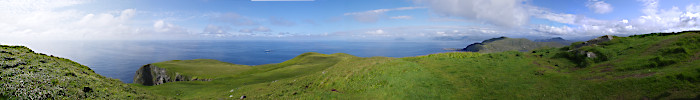 Poz.: N 62.40040°, E 5.60180° Punkt widokowy z kolonii maskonurów. Na wprost wyspa Nerlandsoya.