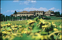 "Monteriggioni" (lipiec, AD 2012) 20 km na północny zachód od Sieny leży malutka miejscowość Monteriggioni, w której znajduje się malowniczy, widoczny już z daleka, niewielki zamek twierdza z XIII wieku z charakterystycznymi 14. wieżami i murami obronnymi. |