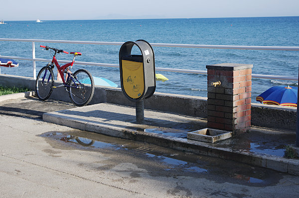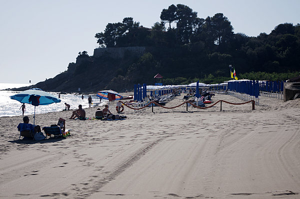 Castiglione della Pescaia - na zachód od GrossetoDługa, szeroka i piaszczysta plaża z bardzo łagodnym pochyleniem. Idealna dla dzieci i bezpiecznego pływania.Lokalizacja: Wyświetl większą mapę W punkcie A znajduje się duży bezpłatny parking widoczny na zdjęciu poniżej. ![]() Po pokonaniu kilku kroków morze jest już w zasięgu wzroku. ![]() Wzdłuż wybrzeża ciągnie się na południe w stronę centrum miasteczka szeroka ulica (z zakazem parkowania). ![]() Za barierką mamy już plażę, prawie pustą jak na lipiec. ![]() W lewą stronę plaża jest trochę bardziej zatłoczona. ![]() Na prawo jest już zupełnie luźno i całkiem szeroko z wydmami zamiast murka. ![]() Ten odcinek kończy się małym, skalistym cypelkiem (teoretycznie zagrodzonym), za którym ciągną się następne plaże. Piaszczyste dno schodzi bardzo łagodnie do morza. Miejsce jest bezpieczne, bez ostrych kamieni i jeżowców. Niestety idzie za tym brak podwodnych, żywych atrakcji. ![]() Przed samym cypelkiem jest kawałek komercyjnej plaży i doprawdy nie rozumiem, jak w czymś takim mozna się kisić. ![]() Miłym zaskoczeniem jest - odkryte podczas powrotu - znajdujące się na ulicy stanowisko do opłukania nóg. Poniżej za murkiem, już na plaży, jest bezpłatny prysznic. ![]() zbyszek POWRÓT |